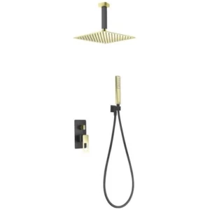 Conjunto De Ducha Monomando Empotrado Negro Oro SERIE ESTOCOLMO