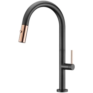 Griferia De Cocina Monomando Extraíble Negro Oro Rosa SERIE SAMOA