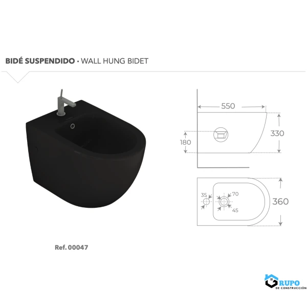 Bidé suspendido Negro Brillo COLECCIÓN VERONA