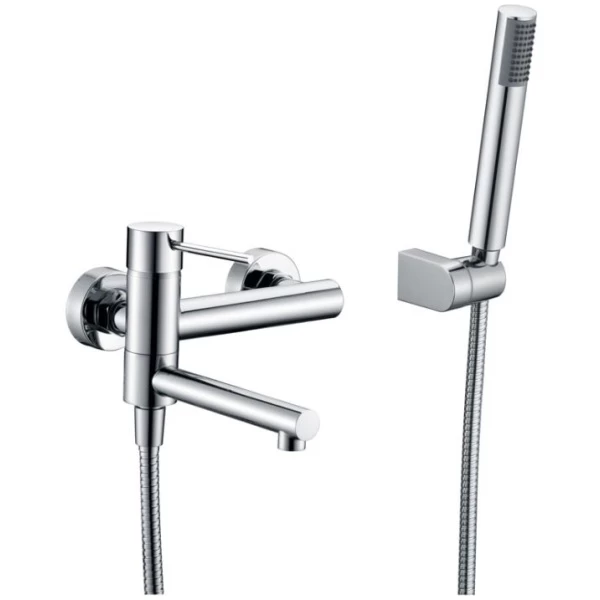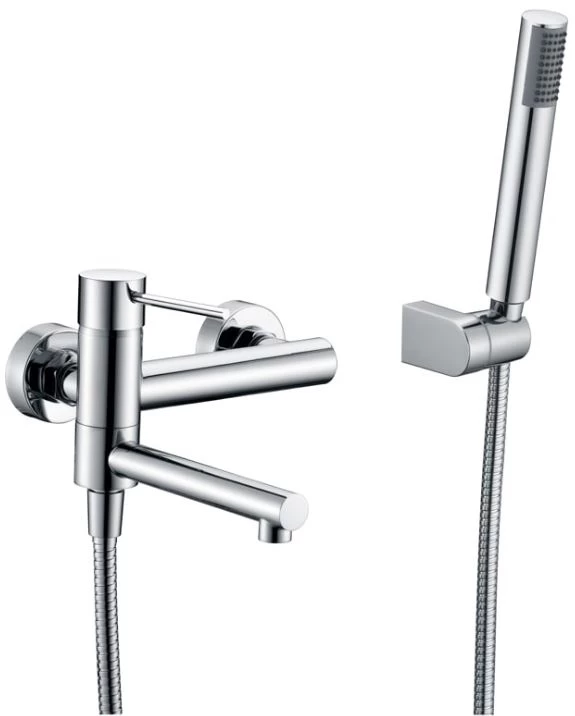 Grifería monomando de baño / ducha latón cromado. Soporte mango de ducha. Mango ducha redondo. Caudal medio 12 I/min. Flexo reforzado extensible 1,7 /1,9 m Cartucho monomando cerámico de 35mm.