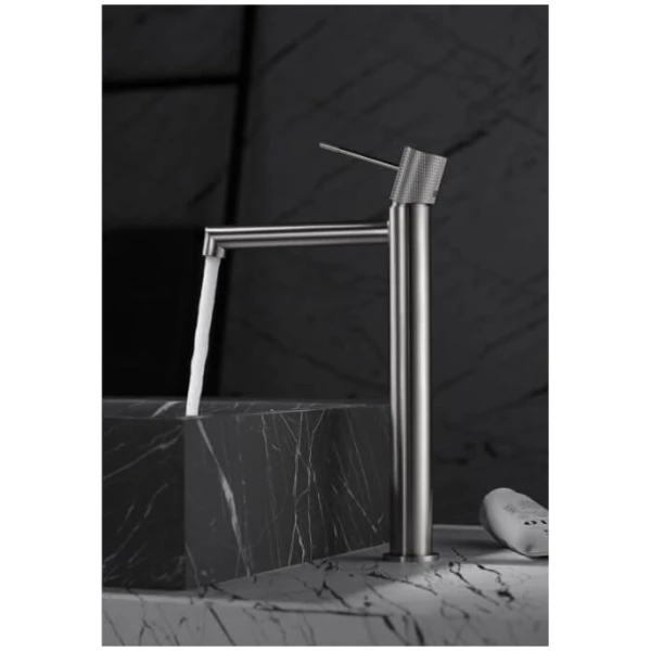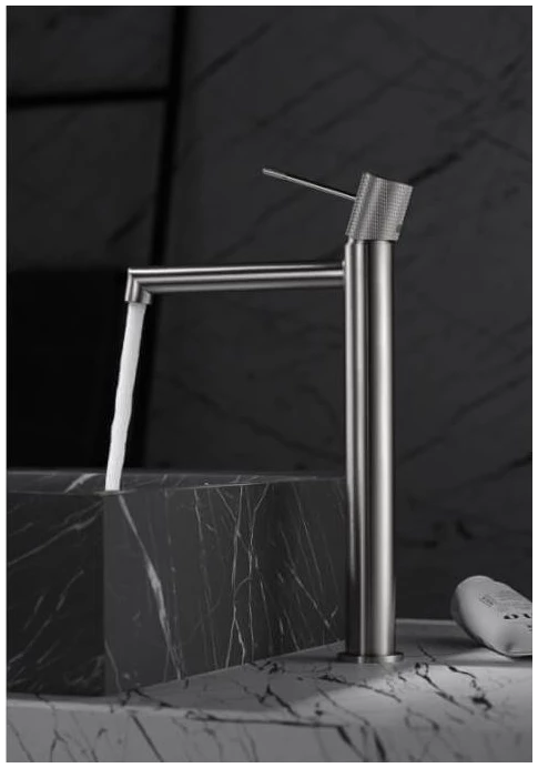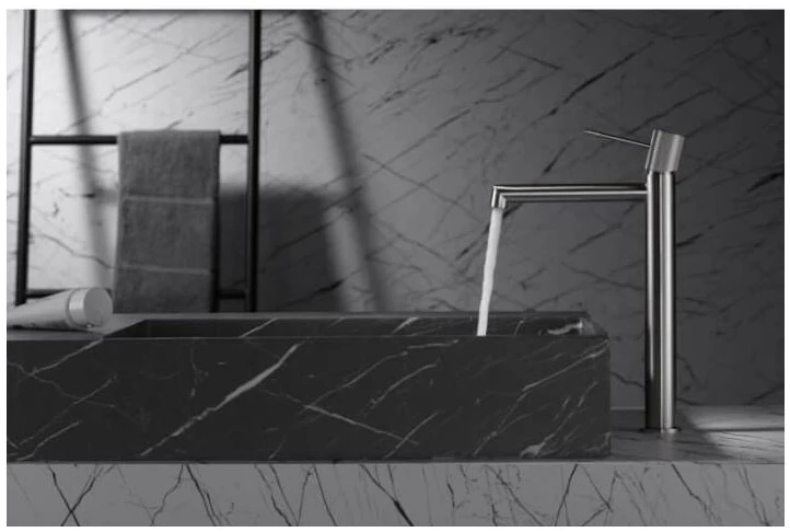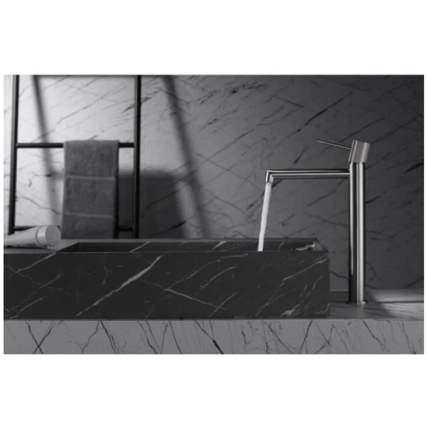 Grifo Lavabo Caño Alto Color Níquel Cepillado LINE