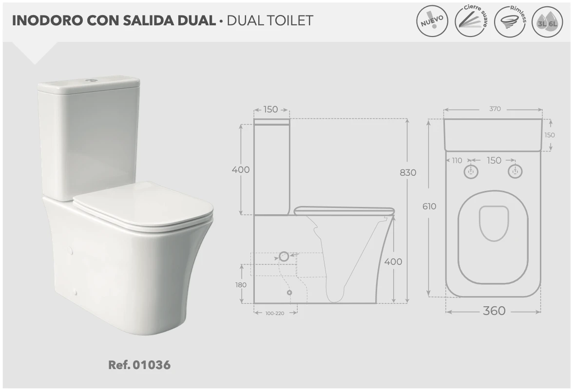 Pack inodoro de cisterna baja Negro Brillo COLECCIÓN VERONA